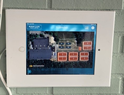 In de serre kunt u de lichten aan en uitzetten via het beeldscherm aan de wand. De verlichting van de tennis- en padelbanen worden bediend met de tablet aan de muur in de serre (afhanghok). Gebruik de knoppen van de tennisbaanverlichting niet meer!!!