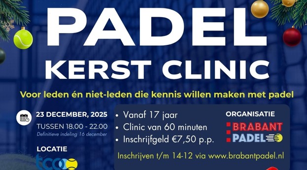 Voor leden van TCO maar ook voor niet-leden om kennis te maken met de sport padel! Schrijf je in op www.brabantpadel.nl